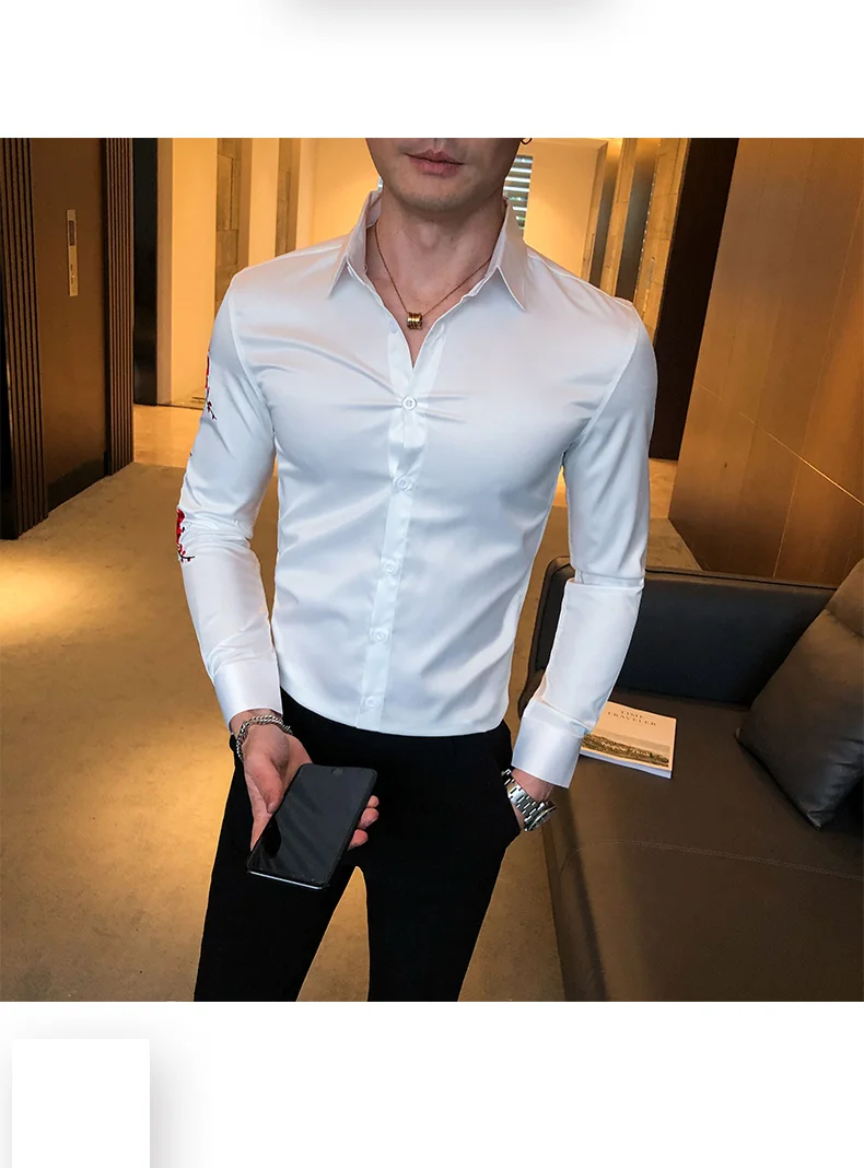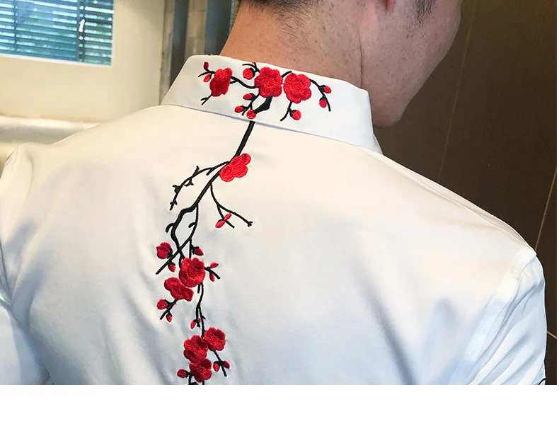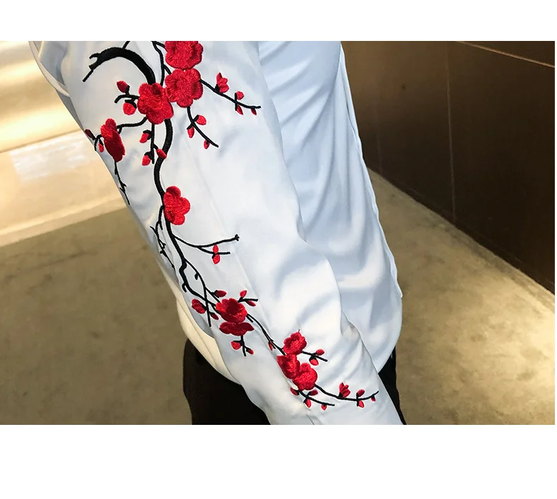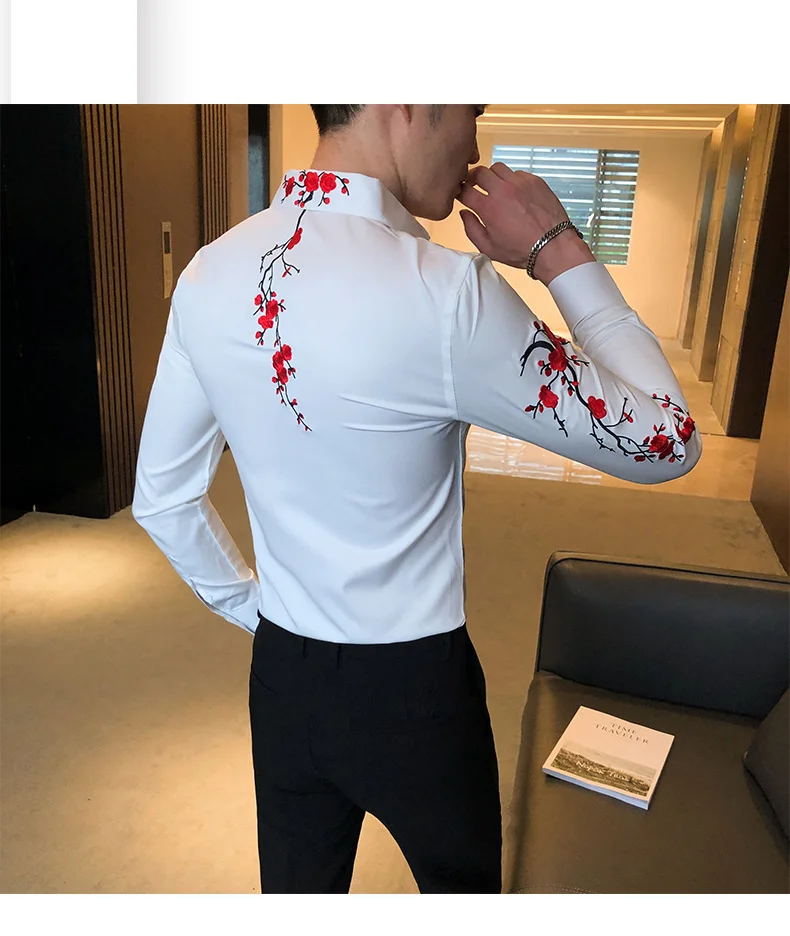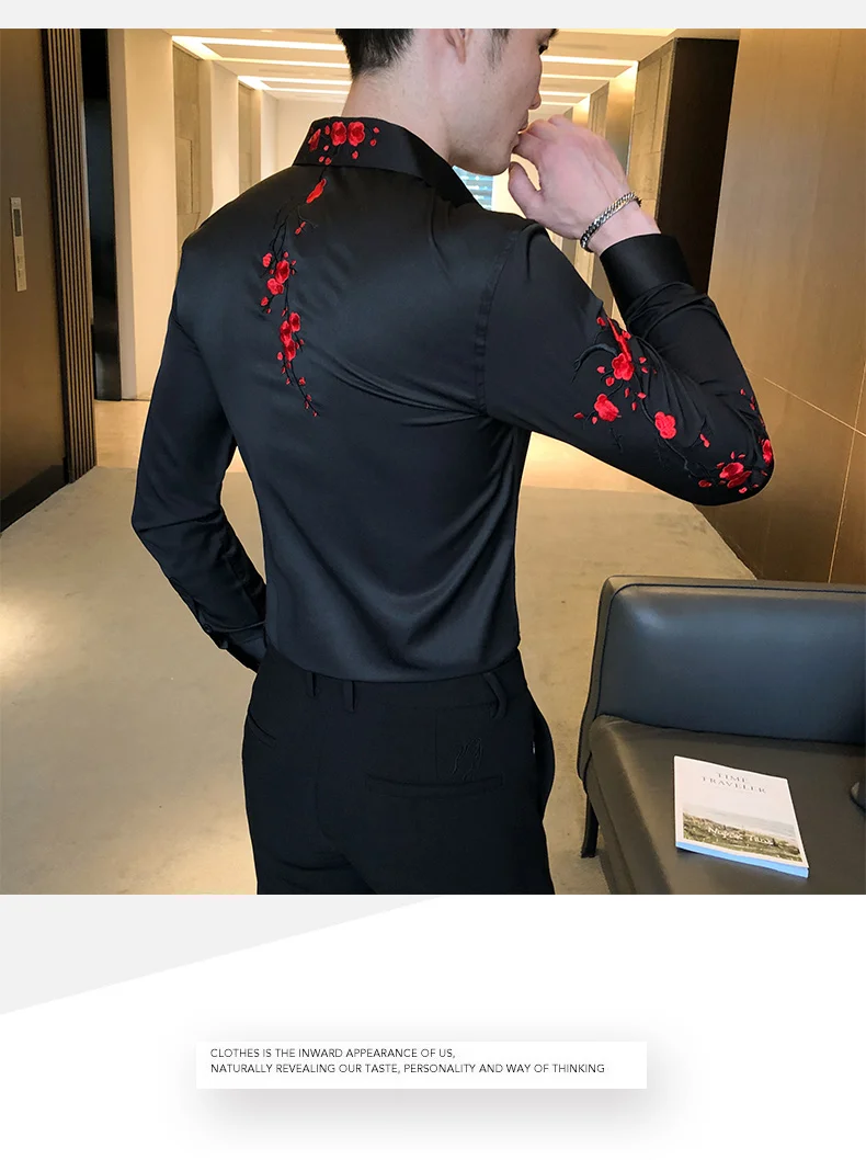 Embroidery Floral Shirt for Men with Long Sleeves. Perfect for Streetwear Social Party Bar.