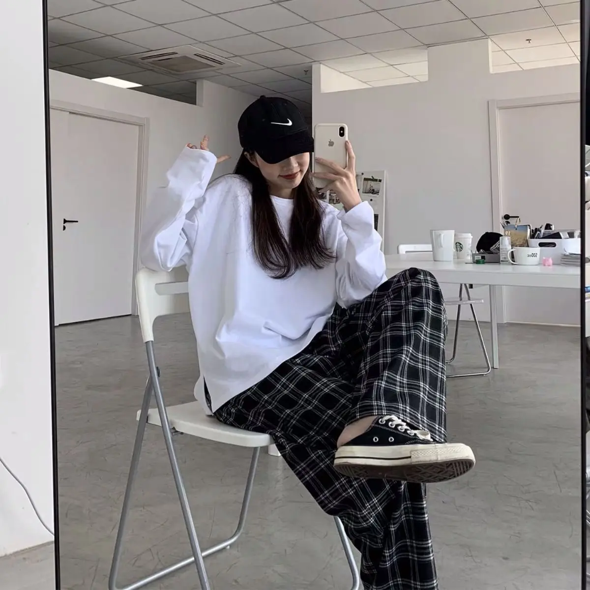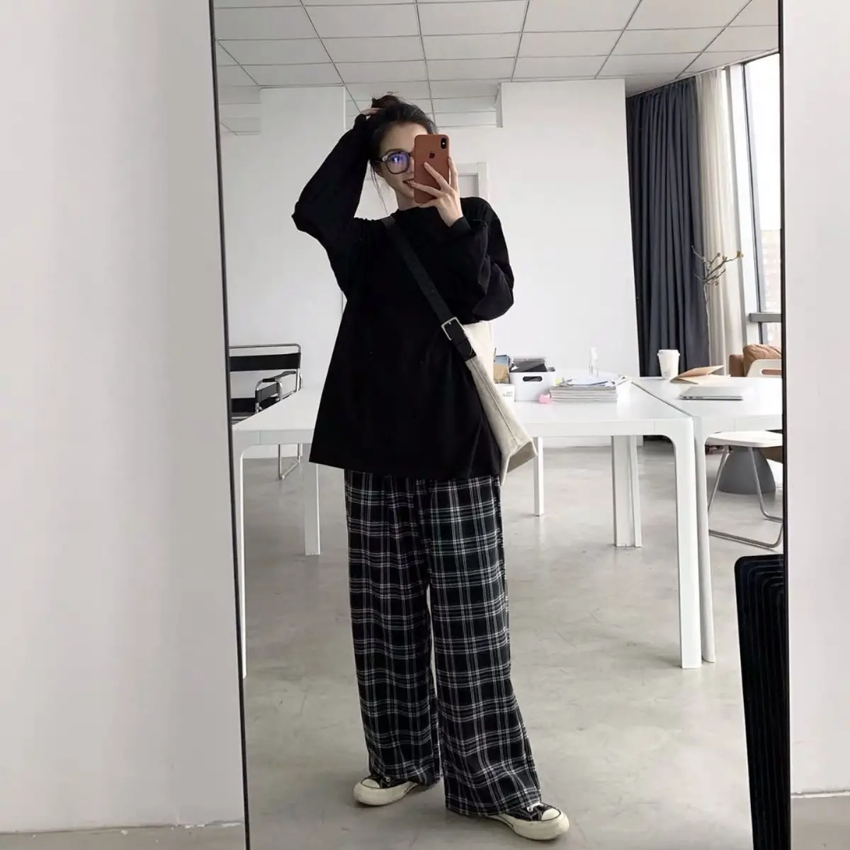 Wide Leg Casual Plaid Pants
